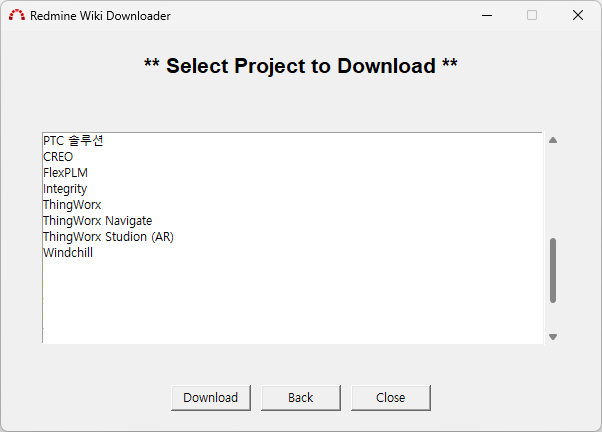 - 다운로드 대상 범위 지정 가능(전체 프로젝트 / 특정 프로젝트 지정)