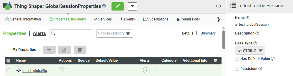 Thingworx에서는 기본적으로 Session 객체에 대한 설정을 할 수 있는 GlobalSessionProperties Entity(Thing Shape)가 있다.