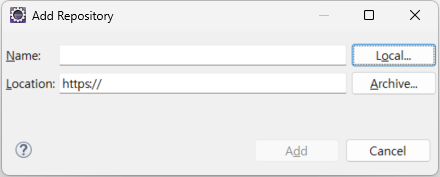 Add를 눌러 Add Repository화면에서 Local...을 클릭하여 이전 단계에서 다운로드 한 thingworx-eclipse-plugin-{version}.zip파일을 선택한다. (Group items by category 옵션 체크 해제)