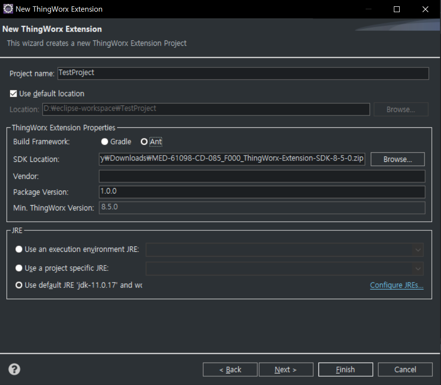 - Thingworx Extensions SDK를 지정하여 Thingworx Extension 프로젝트를 생성한다.
